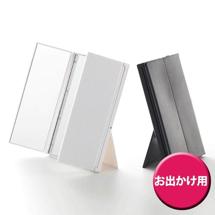 ■女優鏡 女優ミラー 三面鏡 アクトレスミラー お出かけ用 スタンド 自立 鏡 化粧 メイク メイクアップ コンパクト LEDライト センター商事