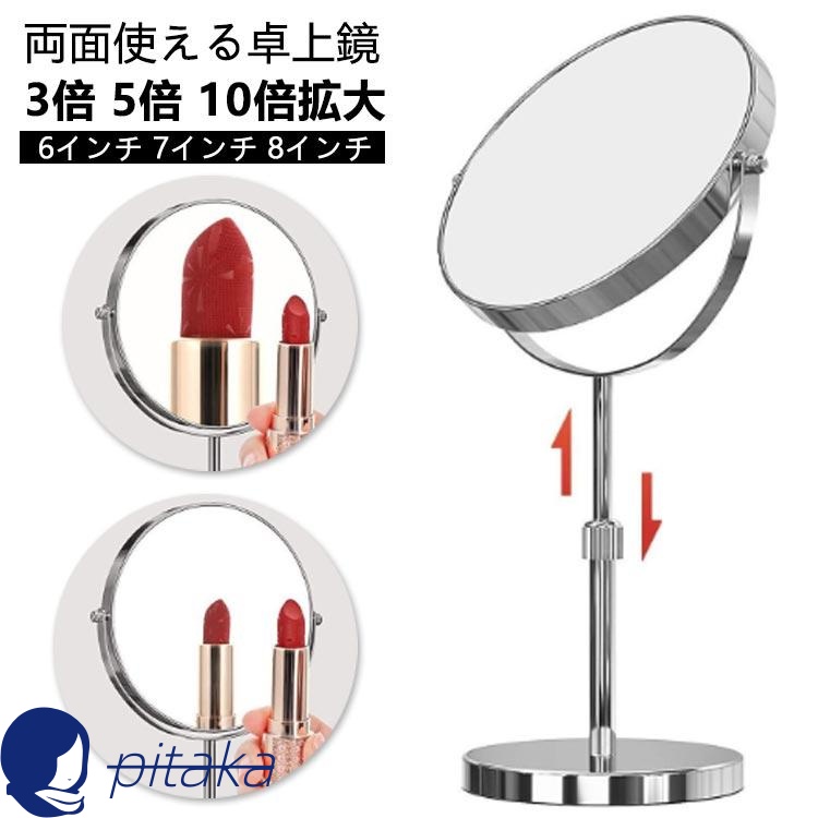 ショップ メイク用 7インチ 拡大鏡付き 3倍 8インチ スタンドミラー 卓上ミラー 10倍拡大鏡 卓上 5倍 店舗 卓上鏡 両面 メイクアップ 高さ