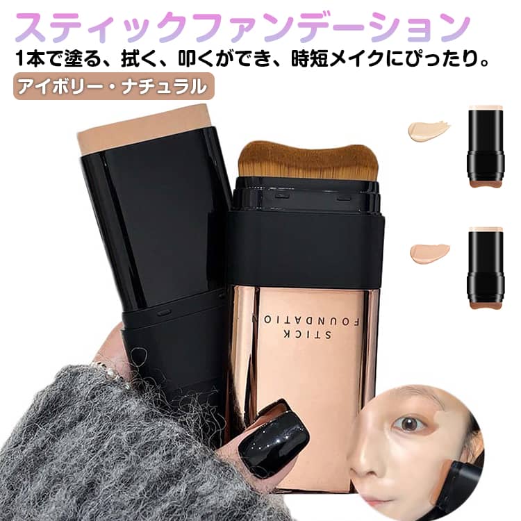 ■メイクアップ スティックファンデーション スティックファンデーション 手が汚れない ブラシ付き メイク道具 スティックタイプ スティッ