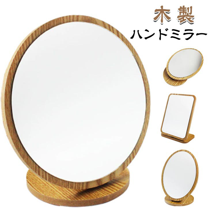 ■てかがみ 手鏡 台座付き 木製 正方形 結婚祝い 折りたたみ ハンドミラー 無垢材 メイクアップ ハンドミラー 新築祝い 旅館 贈り物 ウォー