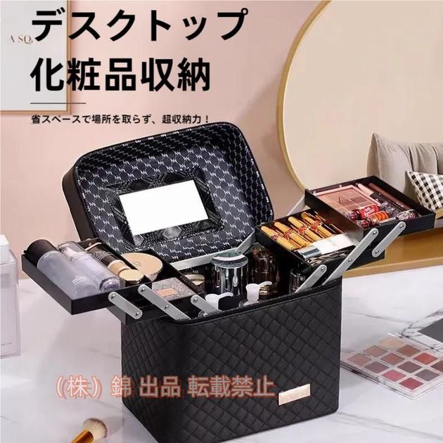 ■5色 メイクボックス コスメ収納 鏡付き 化粧箱 化粧ポーチ メイクBOX メイクアップ トラベルバッグ 大型 株式会社錦 ポータブル PU 大容