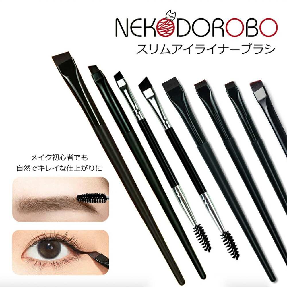 ■種類選べる NEKODOROBO スリムアイライナーブラシ メイクアップブラシ アイブロウブラシ 極細 コスメ道具 メイクアップ 送料無料 ネコド