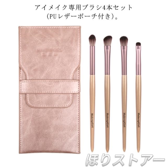 ■送料無料 アイメイクブラシ 4本セット 化粧ポーチ付き アイシャドウ ブラシセット 化粧筆セット 化粧 メイクアップ 目元 ファンデーショ