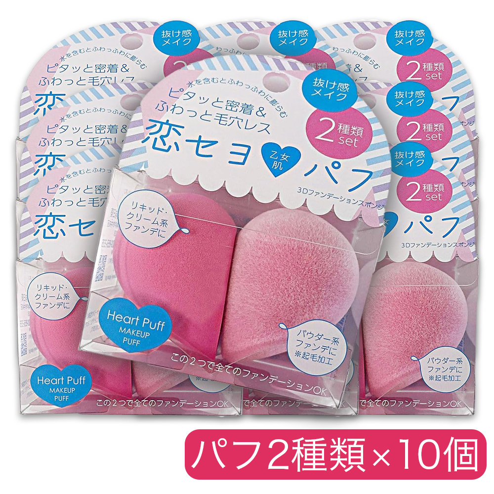 ■恋セヨ パフ ハート 化粧パフ ファンデーション スポンジ リキッド系 パウダー系 2種類 ×10個