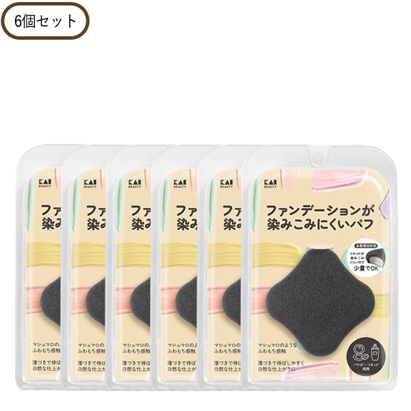 ■染みこみにくいパフブラック 6個セット 多層構造 もちふわ感触 伸ばしやすい 貝印 正規品 ギフト可