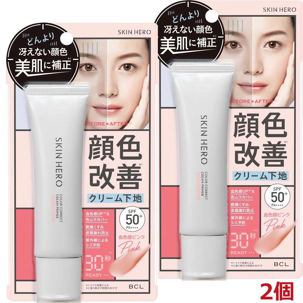 ■【2個】【メール便発送】スキンヒーロー 顔色改善クリーム下地01 血色感ピンク30g (化粧下地)BCL×2個