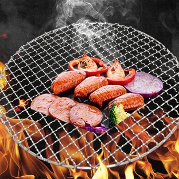 ■304ステンレス鋼丸バーベキューグリルメッシュ、焦げ付き防止バーベキューマットグリッド、ロケーター、コンシーラー、鉄、バーベキュー