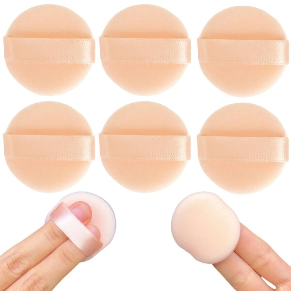 ■YOYOSOFT パウダーパフ ミニサイズ 直径4cm 6個入 プレストパウダー パフ 厚さ7mm 円形 薄型 小さめ フロッキーパフ 替えパフ パフ メイ