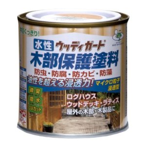 木目を生かして保護強浸透特長●防虫・防腐・防カビ効果のある屋外木部専用塗料です●木部に深く浸透し、塗装面はヒビワレやハガレの心配がありません●素材の風合いを生かしたシックなツヤ消し仕上げ●塗りやすく木目を美しく生かします●安全性を配慮した薬剤を使用しています用途●ラティス・ウッドデッキ・トレリス・プランターなどのガーデン用木製品●外板・板ベイ・破風板などの屋外未塗装木部適した場所:屋外用標準塗り回数:2回塗り光沢:ツヤ消し塗膜の仕上がり:半透明規格:7L塗り面積(2回塗り):30〜50平方メートル(タタミ18〜30枚分)乾燥時間夏期/12〜24時間 冬期/1〜2日塗り重ね時間の目安2〜5時間検索ワード:防カビ 防かび ラティス ウッドデッキ トレリス 屋外 木部 安全 着色 つやけし