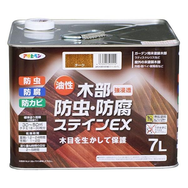 ■塗料 油性木部防虫・防腐ステインEX 7L チーク アサヒペン ペンキ 油性 防腐剤 木材 油性塗料 ウッドデッキ 塗料 ステイン塗料 木材塗料