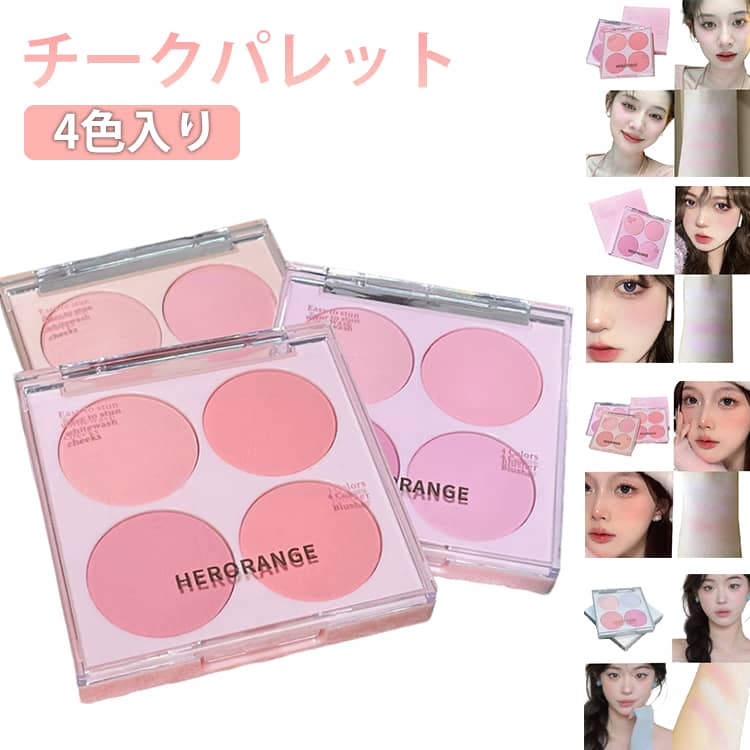 ■ムラなし チーク ロングウェア グラデーション 4色 パウダー 長時間キープ ブルべ ふんわり 重ね塗り イエベ チークパレット チーク パウ