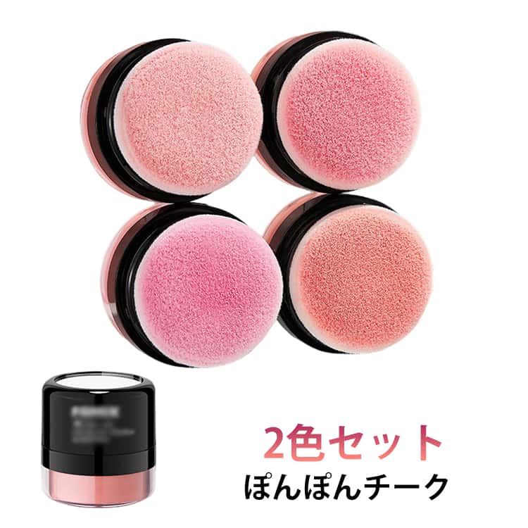 ■チーク ぽんぽんチーク 時短メイク ほおべに 付けやすい コーラル アプリコット ベビーピンク ミルクティーベージュ ふんわり 血色感 マ