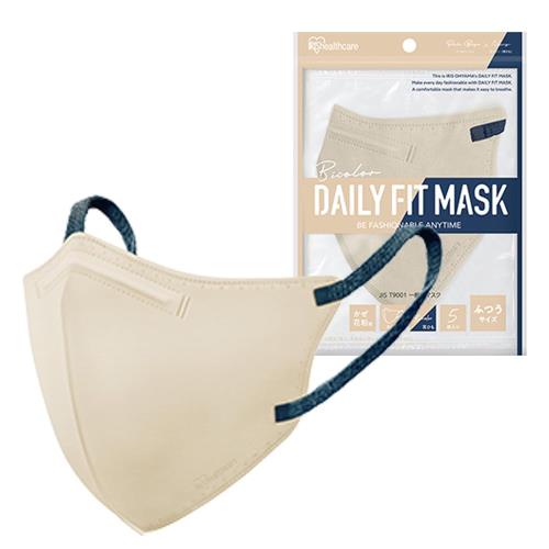アイリスオーヤマ(IRIS OHYAMA) マスク 不織布 立体 3D 5枚入 ふつうサイズ JIS規格適合 小顔 デイリーフィット DAILY FIT 血色 チーク カラー くちばし 個別包装 使い捨て おしゃれ 耳が痛くならない RK-F5SUB ペールベージュ×ネイビー