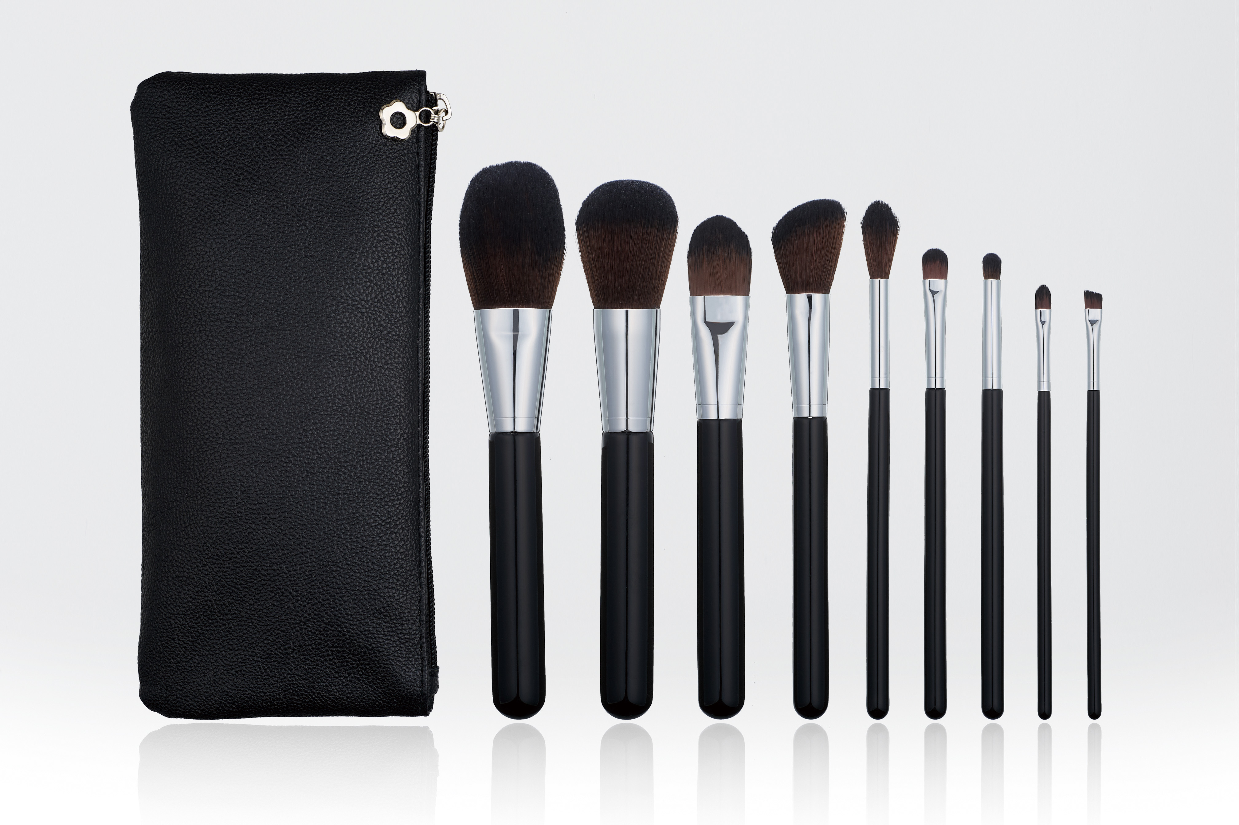■メイクブラシセット ブラシ9本セット ブラシケース付き フェイスブラシ 丸平、フェイスブラシ 丸、チーク&ファンデーションブラシ、チー