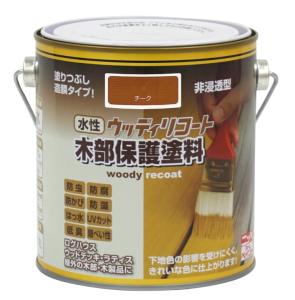 特長●溶剤系の木材保護塗料有機溶剤を用いる塗料は、木材ともなじみが良く、内部に浸透します。木目の風合いを生かした仕上がりになります。■すぐれた有効成分防虫・防蟻・防腐・防カビ機能を持ったすぐれた有効成分により、内側から木材を守ります。■木の呼吸を保つ吸放出性のある層を形成するため、内部の水分の透過を妨げません。■水分放出性浸透した水を速やかに放出させることで、汚れを防ぎ、腐れやカビ、ワレから木材を守ります。■紫外線カット紫外線に強く、従来の塗料に比べ塗料自体の耐久性にすぐれています。カラー:チーク容量:4L標準施工面積:5〜10平方メートル/L(2回塗り)主な適用場所外壁、ウッドデッキ、窓枠、フェンス、屋外木部全般仕上げツヤがなく、木肌の風合いをそのまま残す自然な仕上がり検索ワード:DIY ガーデン 塗料 ペンキ 塗装 防虫 防蟻 防腐 防カビ 木材 保護 屋外 紫外線カット 外壁 大容量 刷毛 塗り ローラー 新築塗装 木部保護 ウッドデッキ ラティス 屋外用アルキット樹脂系浸透型木材保護塗料