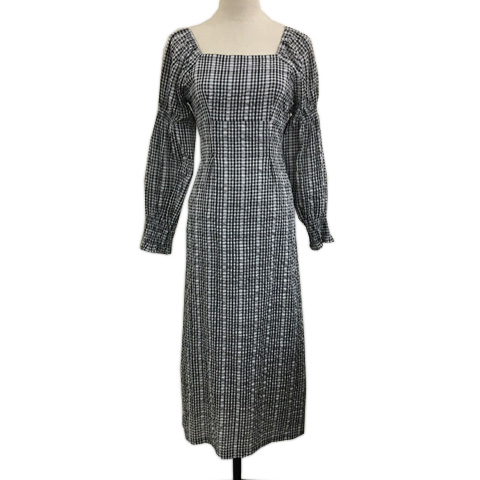 ■【中古】チーク ワンピース Iライン ロング スクエアネック オフショルダー サッカー チェック 長袖 M 黒 白