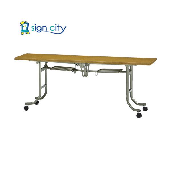 ※こちらの商品はメーカー取寄品となります※ ※ご注文後にメーカーに在庫・納期を確認いたしますこと、予めご了承ください※ ●天板を真中から折りたためるので、省スペースで収納が可能です。●操作レバーを手前に引き、天板を折りたたみます。完全に折りたたむと固定金具が働きます。折りたたんだ状態で移動ができます。 ●間口(mm):1800●奥行(mm):900●高さ(mm):700●折りたたみ時高さ(mm):1280●天板色:チーク●フレーム色:グレー●下棚:付●天板厚さ(mm):28 ●下棚付●天板折りたたみ式●キャスター付 ●天板:28mm厚メラミン化粧板フラッシュ構造・裏面:合板・共巻き●脚部:31.8mmスチールパイプ(焼き付け塗装)、φ60ナイロン双輪キャスター(ストッパー付) ●重量:34.5KG