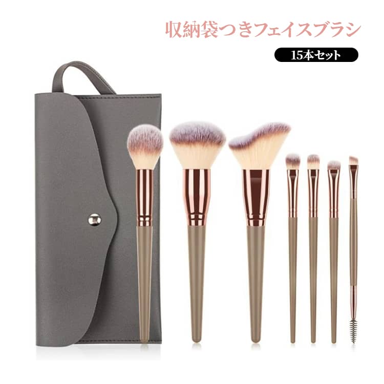 ■アイシャドウ 化粧ブラシセット メイクブラシ 15本セット チーク 収納袋つきフェイスブラシ 誕生日 ギフト