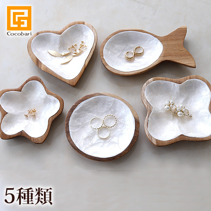 ■アクセサリートレイ(シェル & チーク) バリ 高級感 店舗 インテリア バリ風 おしゃれ アクセサリー マルチ トレー