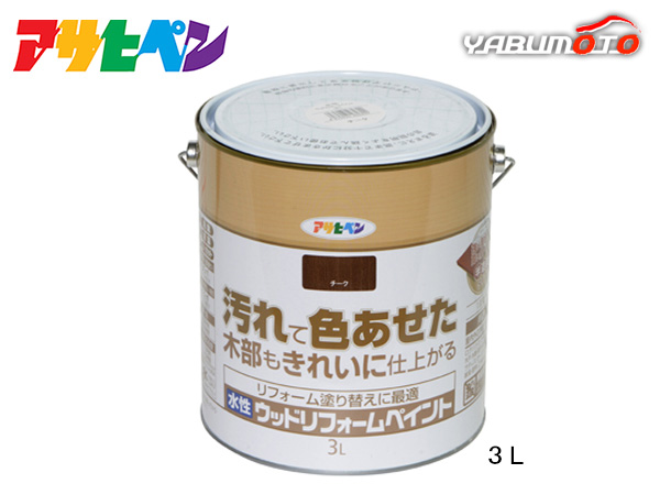 ■アサヒペン 水性 ウッドリフォームペイント チーク 3L 塗料 屋内 屋外 木部 保護 防カビ 撥水 1回塗り