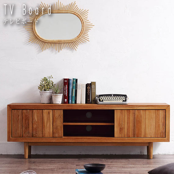 ■Breeze Series シリーズ チーク無垢材 TVボード 150cm幅 (TVボード TV台 テレビ台 チーク 無垢材 ナチュラル 木目 収納 ワックス仕上げ