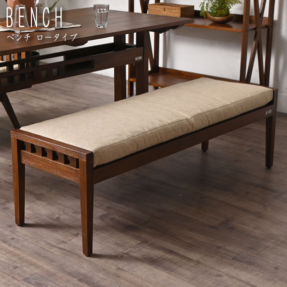 ■aCBi SERIES アクビーシリーズ ベンチ ロータイプ (長椅子 シンプル 低め 高さ38cm ナチュラル チーク 木目 木製 完成品 クッション エ