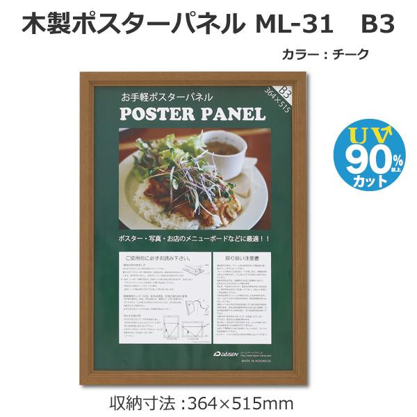 ■( 木製 額 ) 温かみのある 木製ポスターパネル ポスターパネル B3サイズ 364×515mm チーク 額縁 フレーム b04