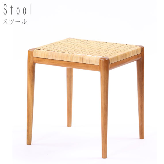 ■INCONTROシリーズ チーク スツール (スツール 椅子 イス チーク 無垢材 ラタン 丈夫 弾力 軽量 木目 ナチュラル ワックス仕上げ おすす