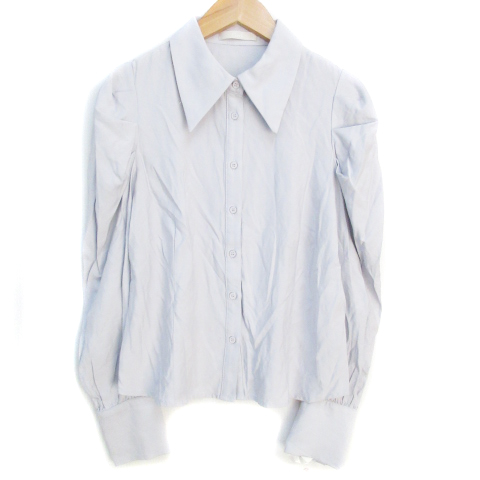 ■【中古】未使用品 チーク cheek シャツ ブラウス 長袖 パフショルダー 無地 M 水色 ライトブルー /FF50 レディース