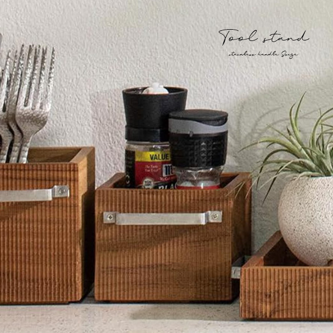 ■ツールスタンド チーク×ステンレスハンドル S(カトラリースタンド おしゃれ キッチンツール スタンド 収納 木製 北欧 箸立て 箸たて キ