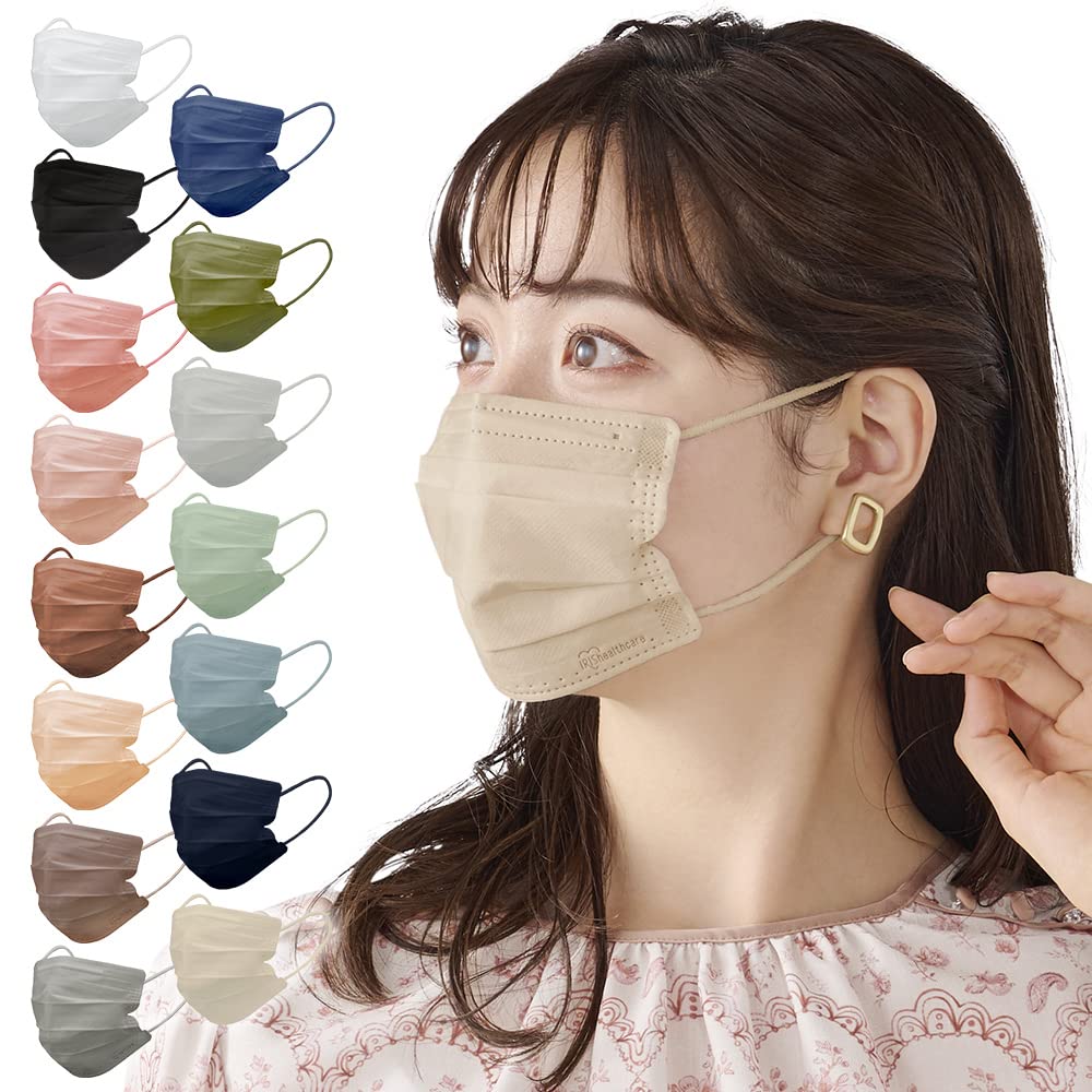 ■[アイリスオーヤマ] マスク 不織布 プリーツマスク 小顔 夏カラー 爽やか 涼しげ 血色 チーク カラーマスク 使い捨て おしゃれ 耳が痛く