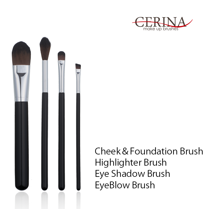 ■メイクブラシセット メイクブラシ4本セット チーク&ファンデーションブラシ ハイライトブラシ アイブローブラシ アイシャドウブラシ メ
