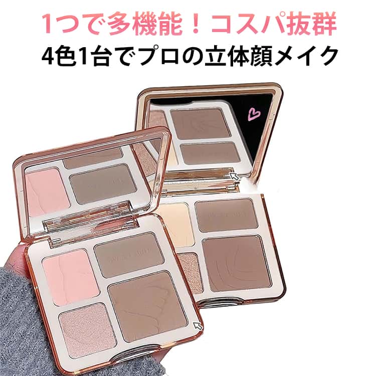 ■四色パレット シェーディング 立体感 ハイライト 四色パレット 小顔 立体 立体輪郭メイク 血色 チーク マットハイライト パールハイライ