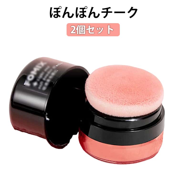 ■時短メイク アプリコットピンク ほおべに ぽんぽんパフ付き プチプラ 【2点セット】チーク 付けやすい コーラルレッド 【2点セット】チー
