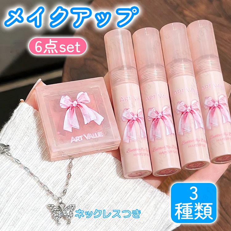■メイクセット (cs463#) 当日発送 6点セット リップグロス 口紅 50代 落ちにくい チーク 化粧品 チークカラー 韓国コスメ ネックレス リッ