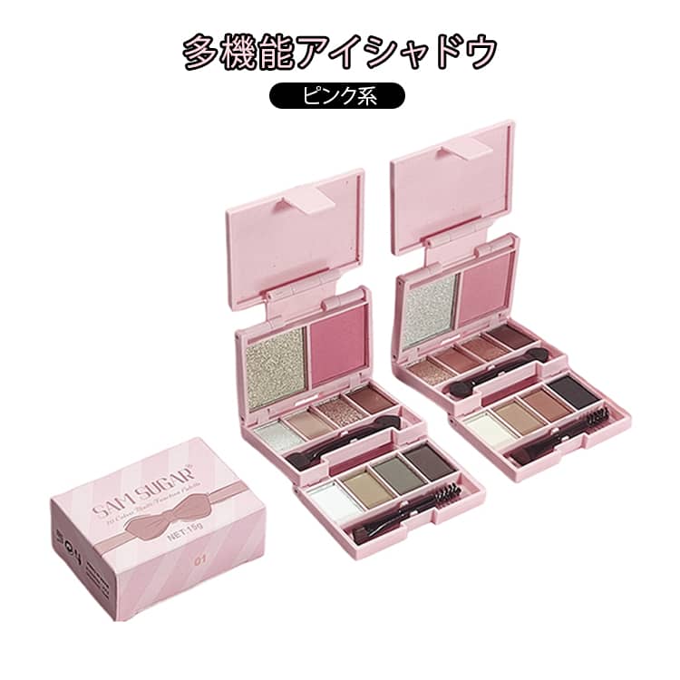 ■マルチアイシャドウ メイクブラシ付き チーク ハイライター 多機能 10色 ピンク