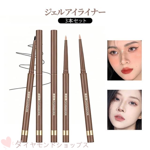 ■3本セット ジェルアイライナー 落ちない アイライナー 長時間キープ ウォータープルーフ スマッジプルーフ 目元 目もと まつ毛 ケア メ