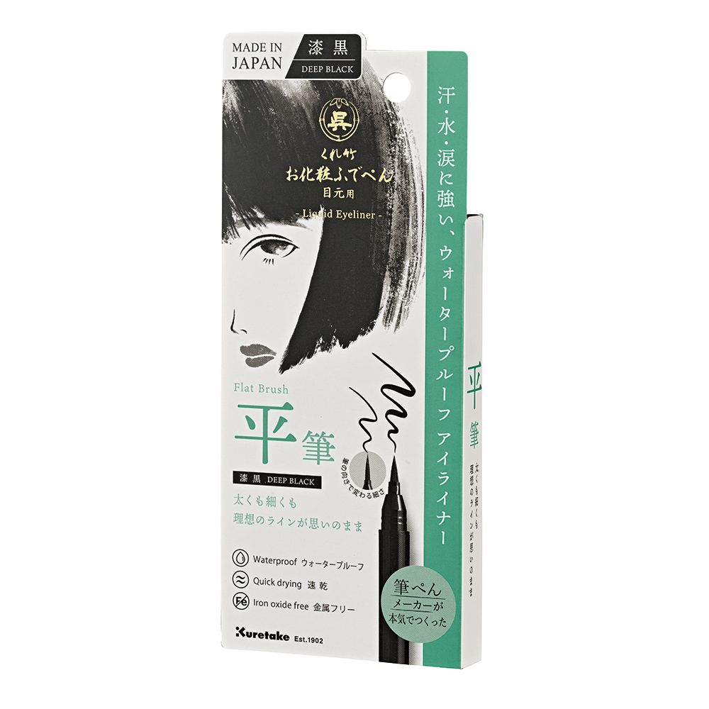 ■【メール便発送】呉竹 お化粧ふでぺん 目元用 アイライナー 速乾 & ウォータープルーフ 金属フリー 漆黒 平筆タイプ KFE31-010P
