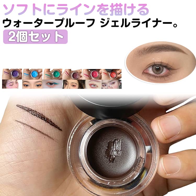 ■化粧品 アイライナー ブラシ付き 2個セット ウォータープルーフ ジェルライナー 韓国 描きやすい 2個セット 崩れない アイメイク プチプ