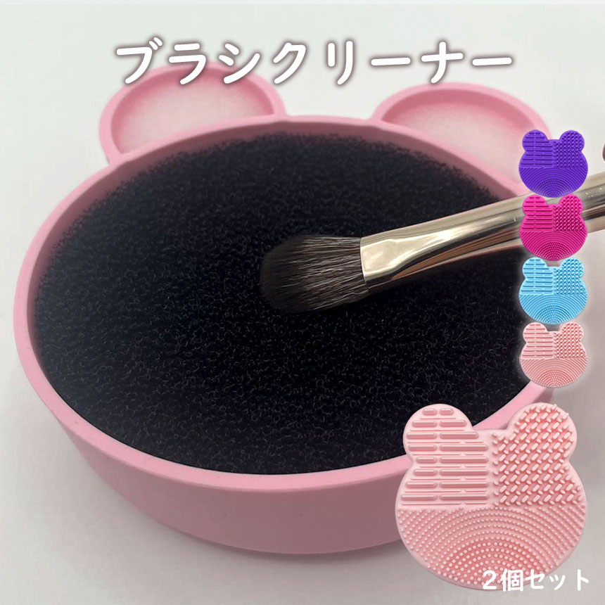 ■ドライスポンジクリーナー ブラシ洗浄 2個セット くま型 メイクブラシ スポンジ メイク アイシャドウ 色混ざり 清潔 シリコン 凸凹 水洗