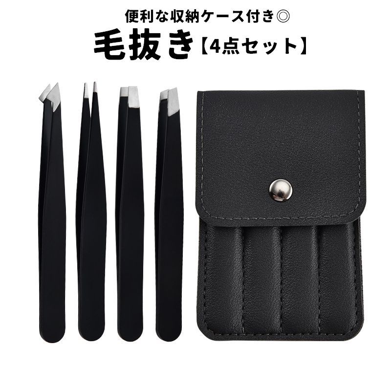 ■毛抜き ツィザー ピンセット 4点セット 4本セット ケース付き 収納ケース 仕切り アイブロウ 眉毛 お手入れ ムダ毛処理 ツ