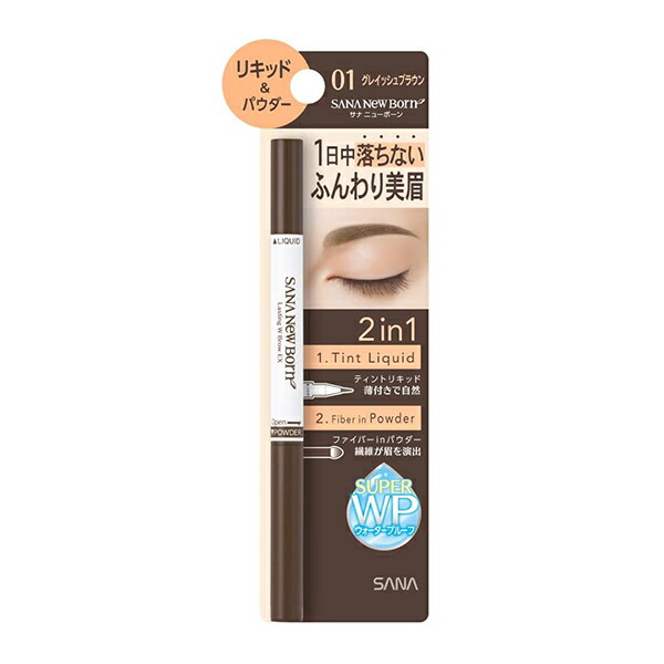■サナ ニューボーン ラスティングWブロウEX N 01 グレイッシュブラウン アイブロウ リキッド パウダー 2way ウォータープルーフ 汗 水 皮