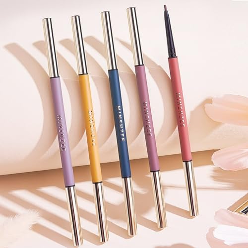 ■アイブロウペンシル 超細芯 長持ち 高発色 ウォータープルーフ - ペンシル&ブラシ 2機能一体型 繰り出し式ペンシル アイブロウ - 人気