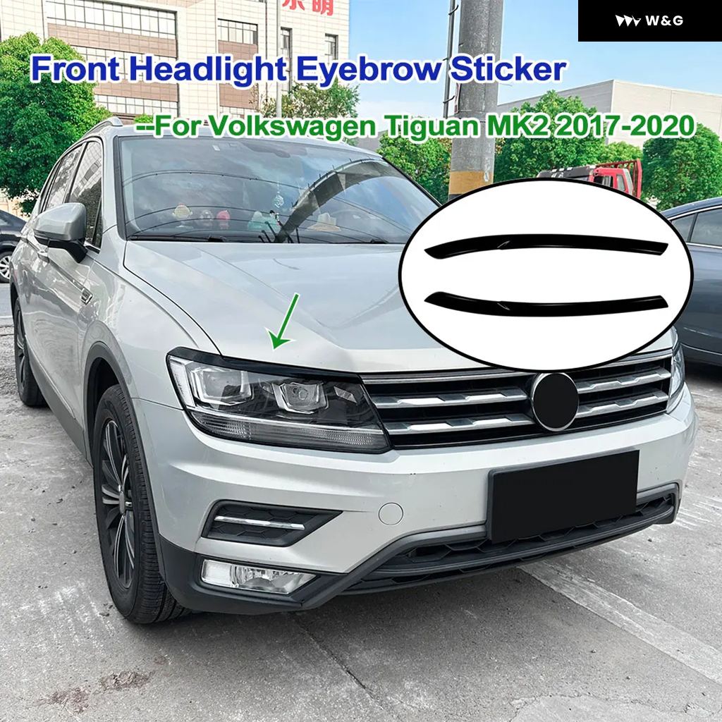 ■2017-2020 フォルクスワーゲン ティグアン MK2 用 フロント ヘッドライト アイブロウ ロア ステッカー スポイラー 外装 グロスブラック