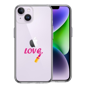 ■iPhone14Plus ケース クリアレディース 口紅 LOVE 愛 スマホケース 側面ソフト 背面ハード ハイブリッド 送料無料