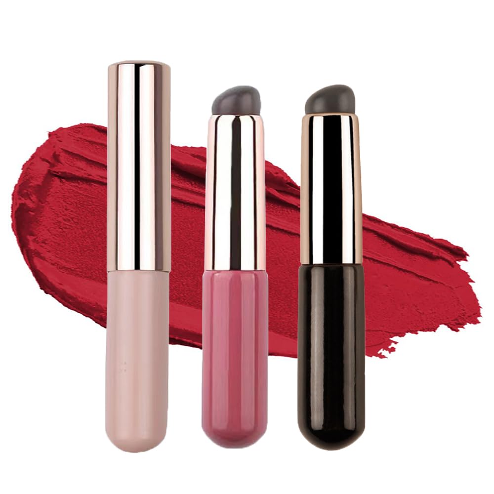■リップブラシ コンシーラーブラシ シリコン 3個セット 丸頭 メイクブラシ 口紅 ブラシ 携帯用 タッピングコンシーラーブラシ シリコンパ
