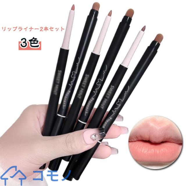 ■2本セット リップペンシル リップライナー 3色 ペンシル 口紅 リップ 韓国コスメ 美容ペン リップペン 防水 滑らか 長持ち リップライナ