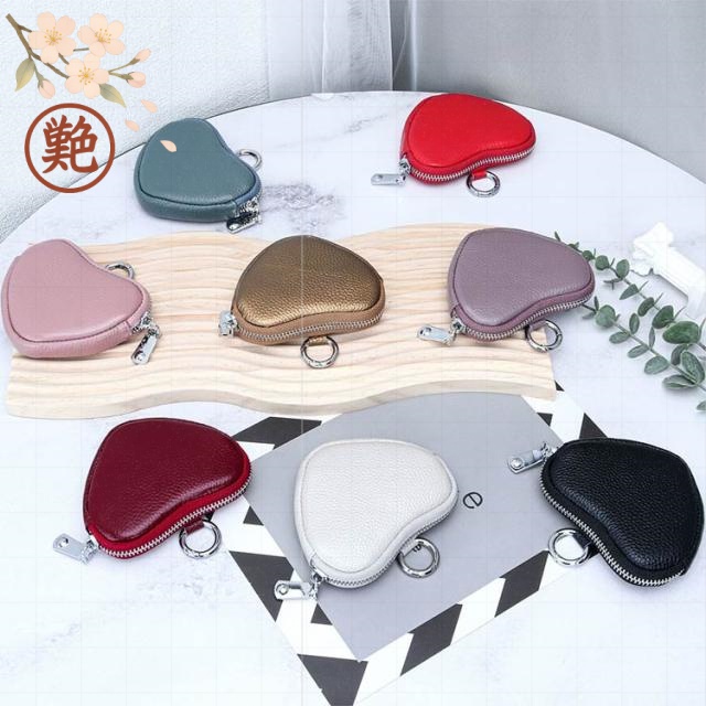 ■可愛い レザー 鍵 レディース コンパクト財布 コインケース おしゃれ ミニポーチ 小物入れ シンプル 柔らか 小銭入れ 口紅 ミニ財布 ファ