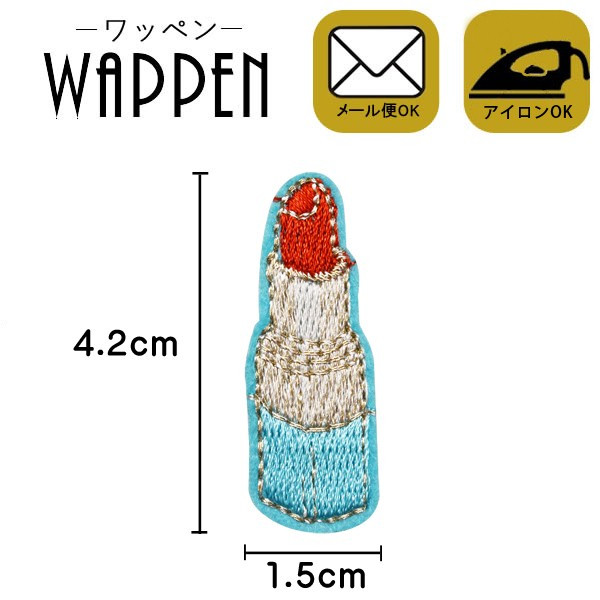 ■ワッペン アップリケ 刺繍ワッペン アイロン接着 手芸 コスメ ハンドメイド 縦4.2cm×横1.5cm ブルー 口紅 リップ母の日 プレゼント ギフ