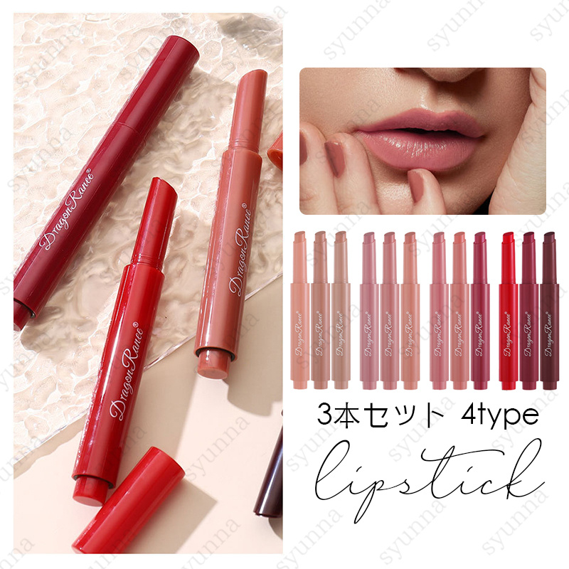 ■cs709#リップスティック 当日発送 3本セット 4type 口紅 lipstick 落ちにくい 韓国コスメ レッド ティント 化粧品 プチプラ 保湿 リップ